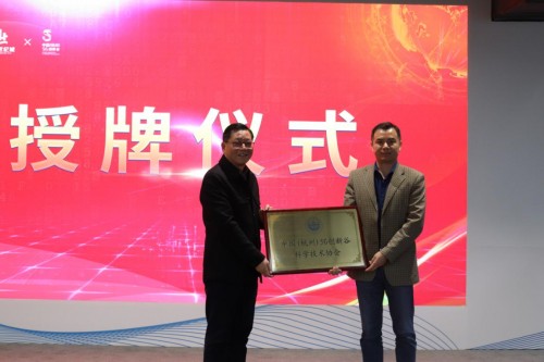 恒領(lǐng)科技董事長黃迎勝為5G創(chuàng)新谷科協(xié)授牌。