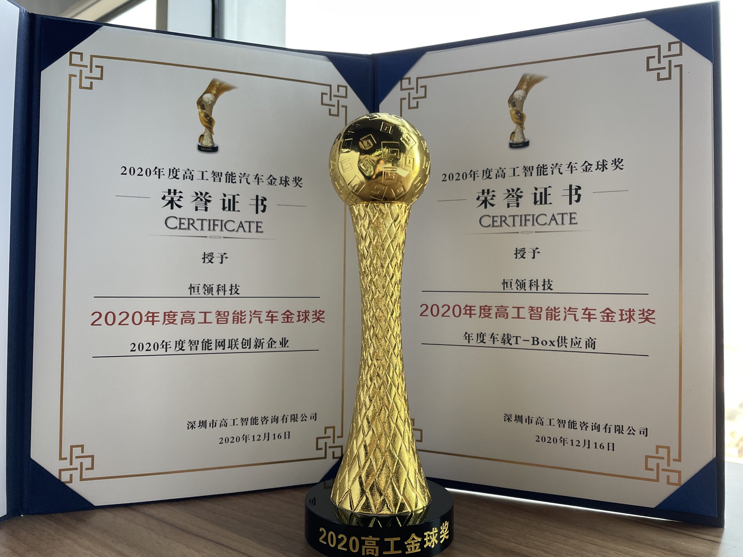 恒領(lǐng)繼2019年度獲“年度T-box供應(yīng)商”之后,今年再次在數(shù)百家參選企業(yè)里脫穎而出,一舉斬獲“2020年度高工智能汽車金球獎—— 2020年度智能網(wǎng)聯(lián)創(chuàng)新企業(yè)、年度車載T-Box供應(yīng)商”兩項(xiàng)獎項(xiàng)。